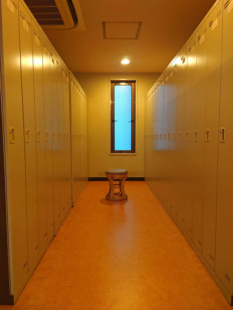 ご来店されましたら履物を下駄箱に入れ施錠していただき、下駄箱の鍵と交換でカプセルルーム番号の書かれたキーをお渡しします。キーと同一番号のロッカーをご利用ください。カプセルホテルは法令により部屋に鍵はかかりませんので、貴重品はフロント脇の貴重品ロッカーをご利用いただくようにお願いいたします。ロッカーに入りきらない大きなスーツケースなどは、チェックアウトまでフロントでお預かりが可能です。連泊される場合も、お荷物を無料でお預かりいたします。