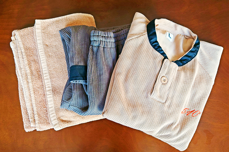チェックイン時に館内着とタオルセットをお渡しします。